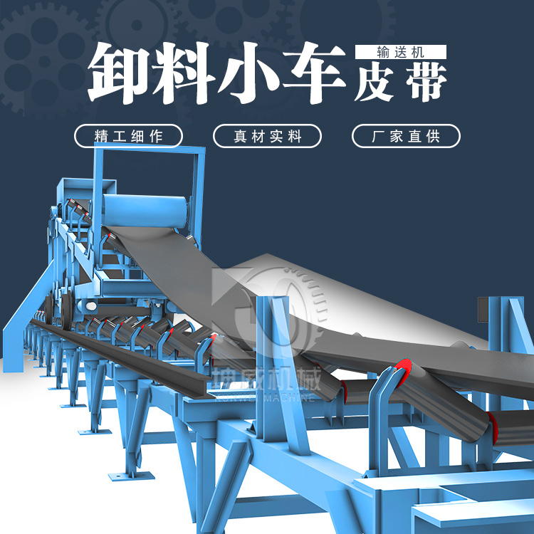 皮帶輸送機卸料小車在部件組成上和皮帶輸送機沒有太大差異。都是包含滾筒輸送帶以及托輥等部分組成。